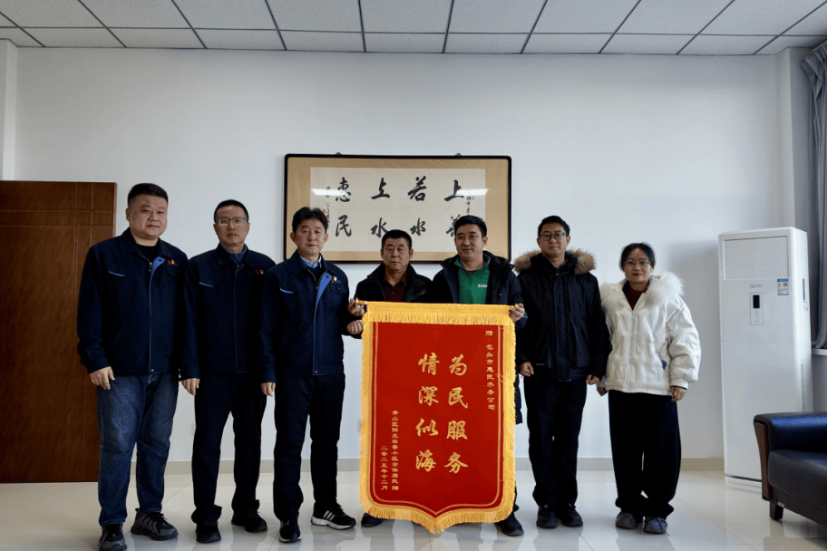 阳光翠景小区住民代外隆重送来了“为民供职,情深似海”的鲜红锦旗。“衷心谢谢惠民水务公司心系老子民,这份实实正在正在的闭心,暖到了咱们的心坎里。这面锦旗上的字字句句,都饱含着全数住民的朴拙谢意!”住民代外难掩激昂之情地说道。